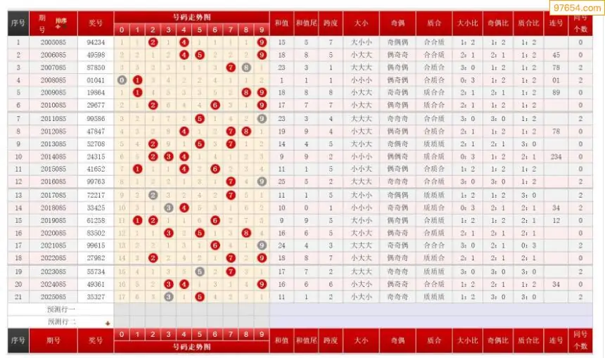 085期排列三历史号码对比图+数据走势分析