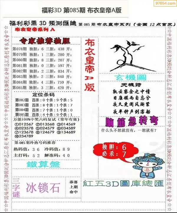 福彩3d085期新禧布衣定位杀号