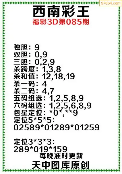 3d原创085期东北财神预测