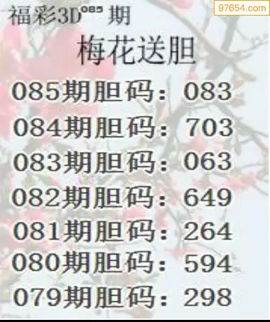 085期97654本站收集胆码出号预测