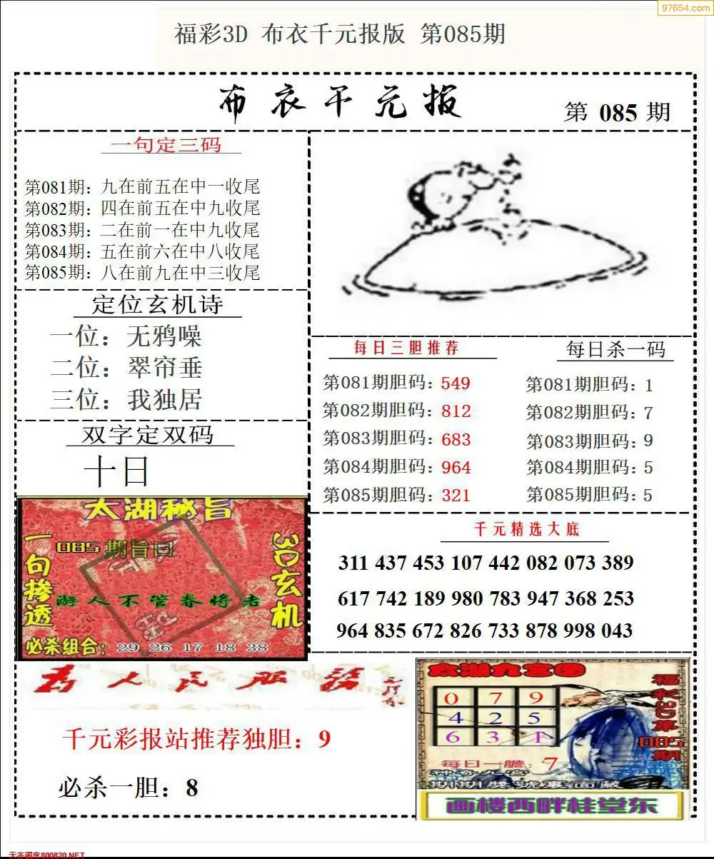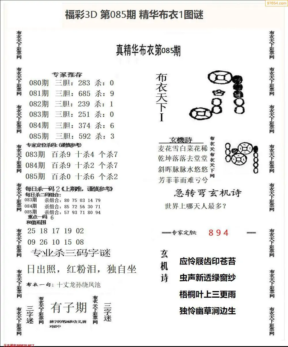 福彩085期3d真精华布衣+布衣早报(转载)
