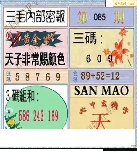 (8)26年085期今日3d各类彩报汇总