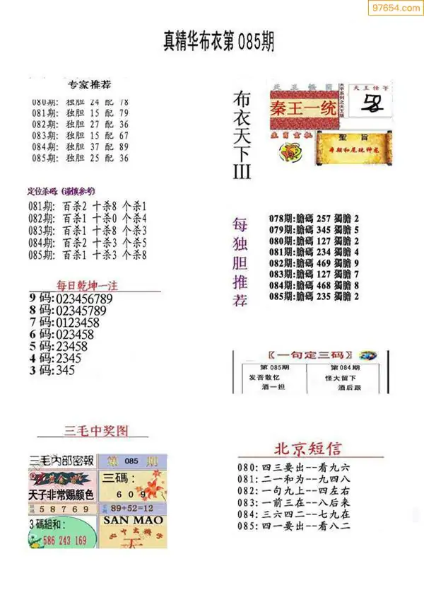 (2)26年085期本期3d图迷汇总_福彩3D图谜总汇图