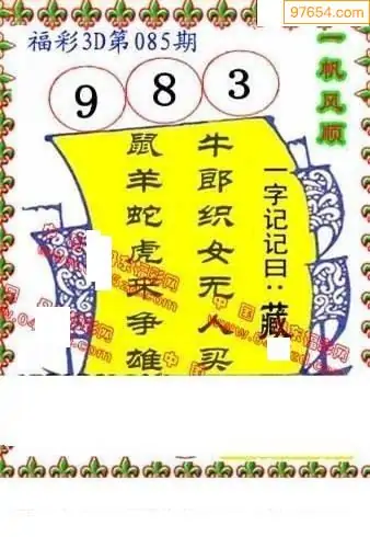 (3)2026085期3D预测总汇全图_福彩3d图谜字谜总汇