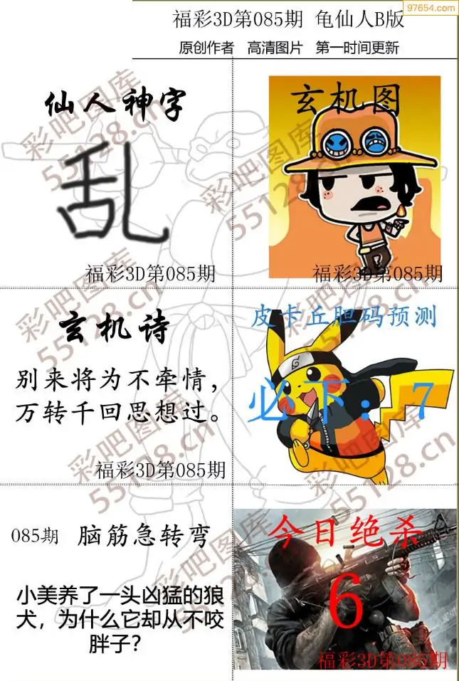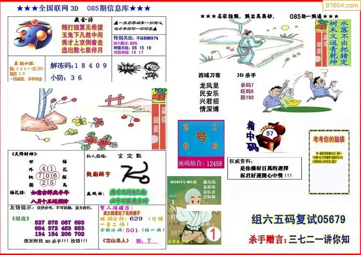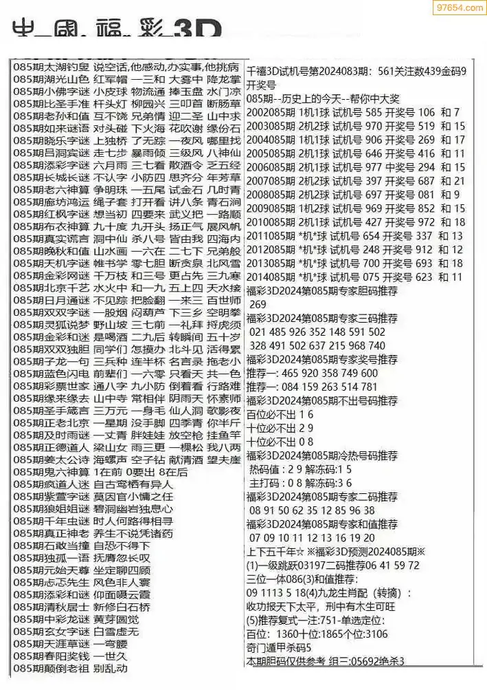 (3)2026085期3D预测总汇全图_福彩3d图谜字谜总汇