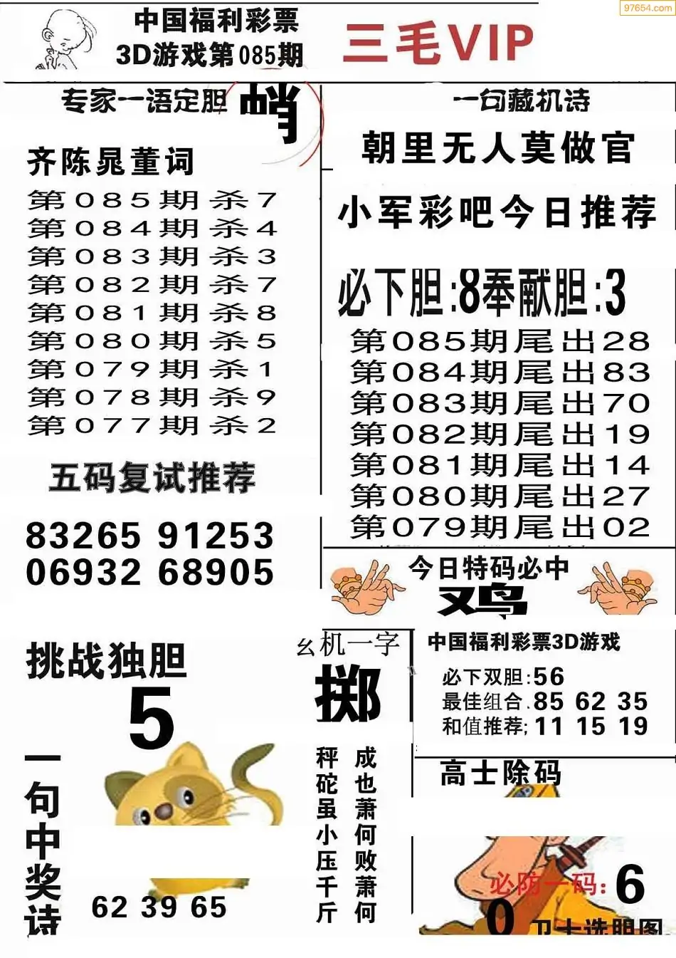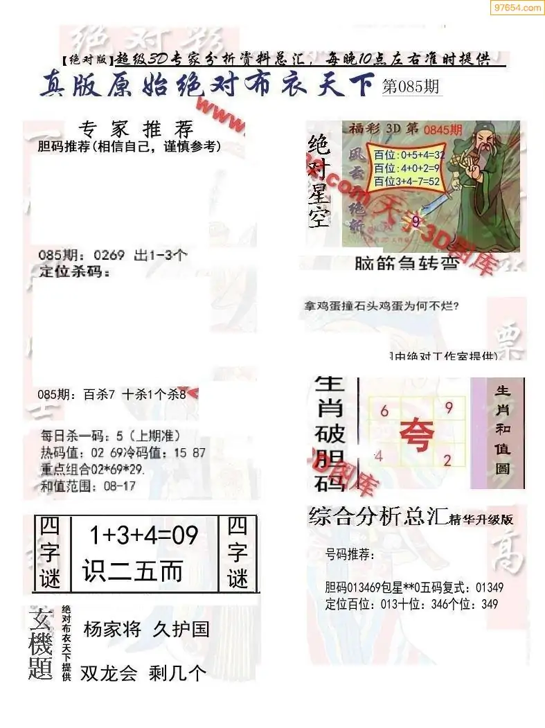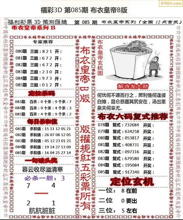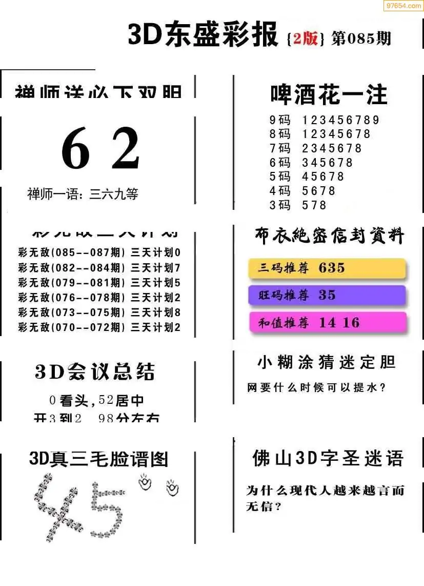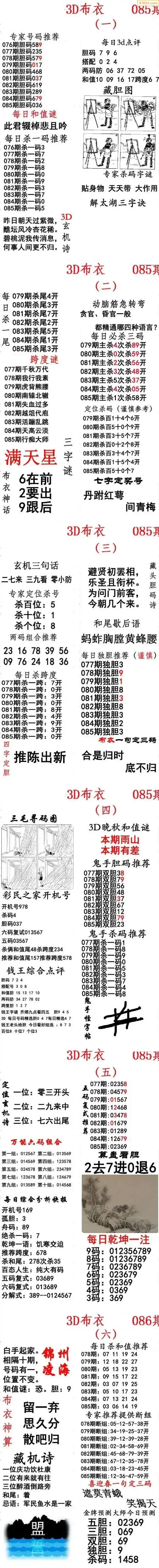 (2)26年085期本期3d图迷汇总_福彩3D图谜总汇图
