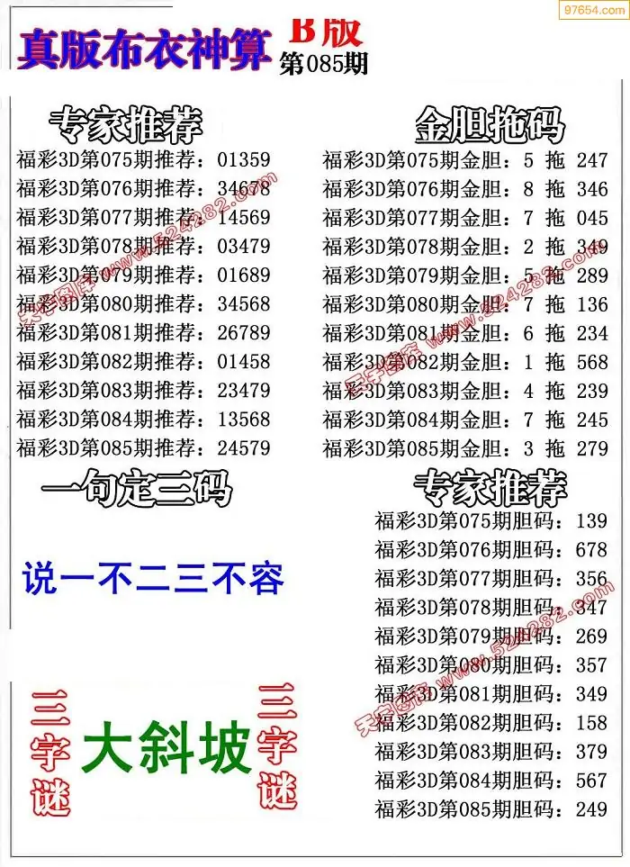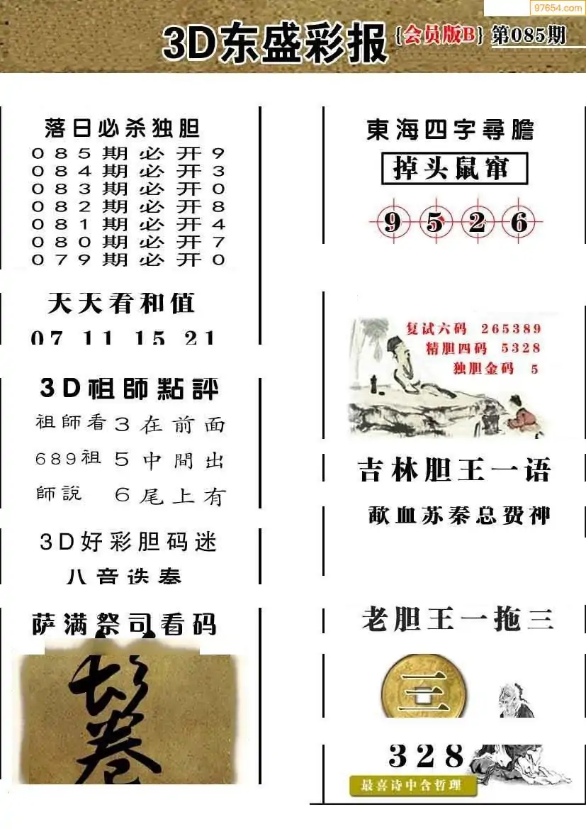 (8)26年085期今日3d各类彩报汇总