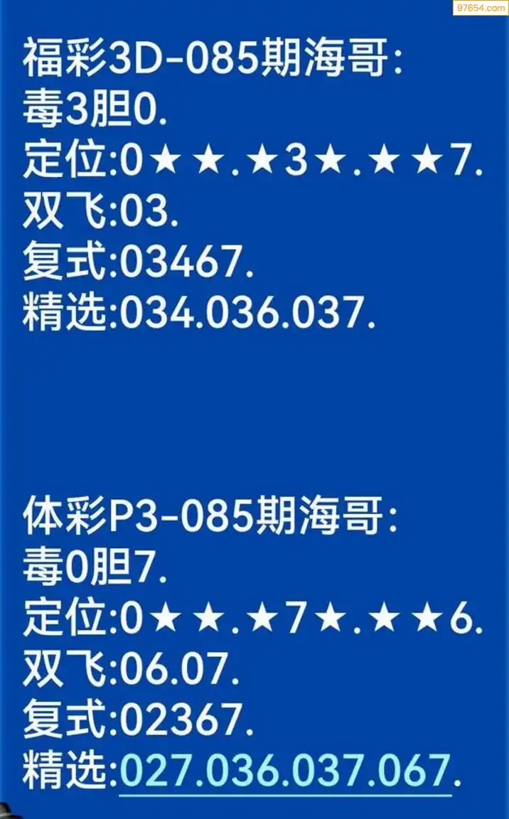 海哥福彩085期3d今日双胆