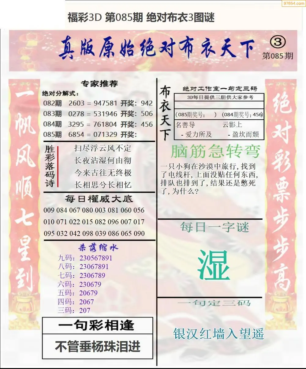 福彩085期3d真精华布衣+布衣早报(转载)
