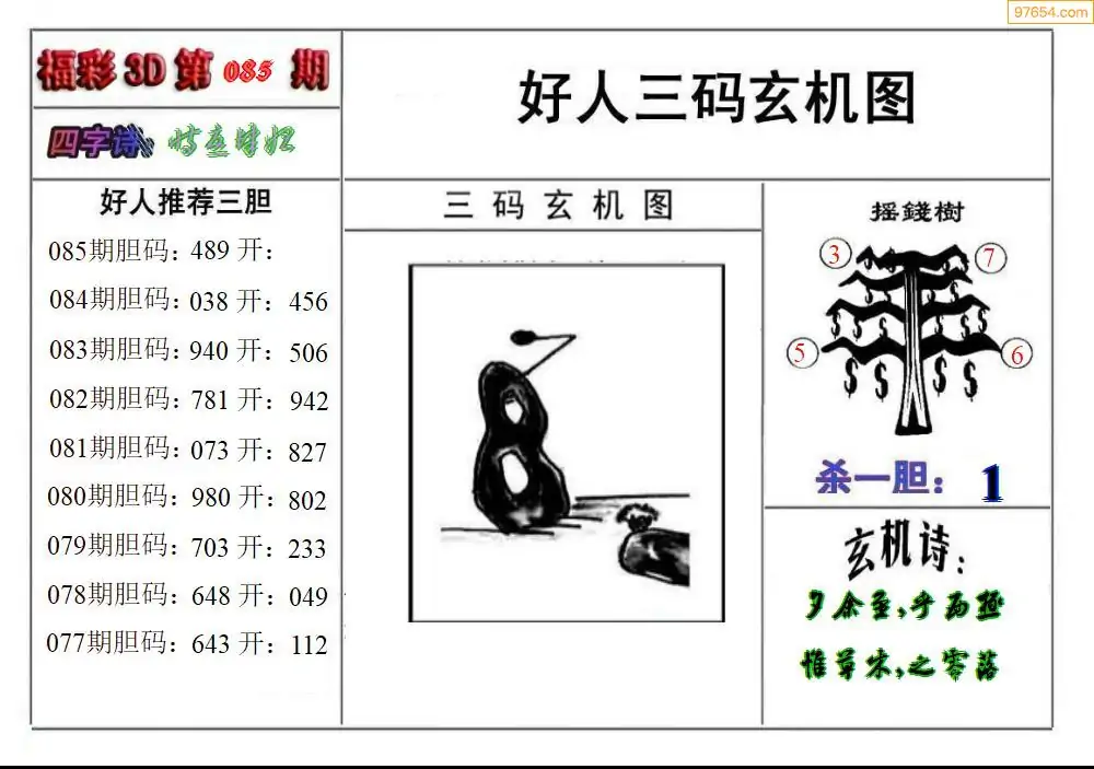 福彩3D085期天牛彩吧套图整合总汇