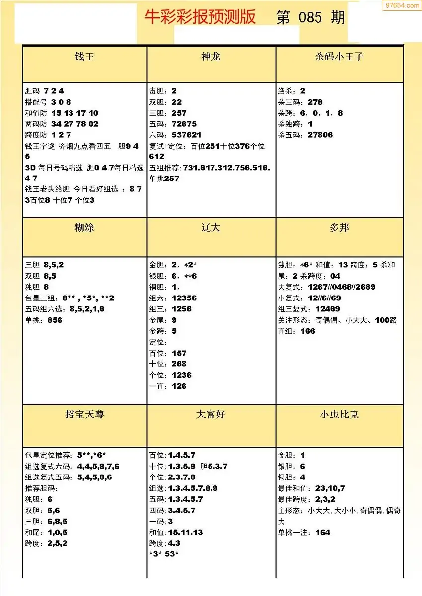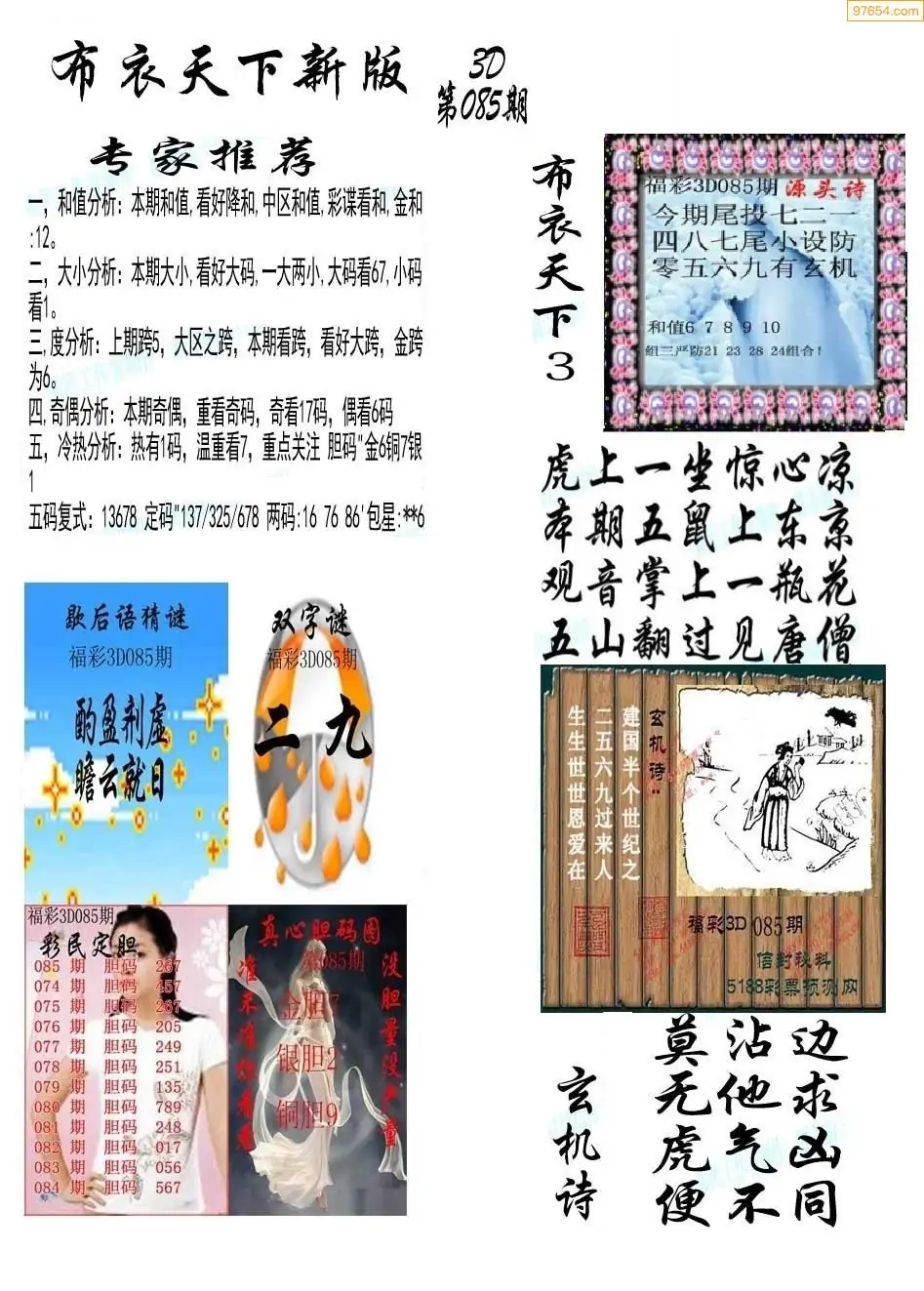 (2)26年085期本期3d图迷汇总_福彩3D图谜总汇图