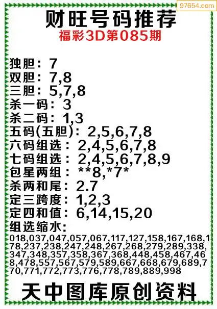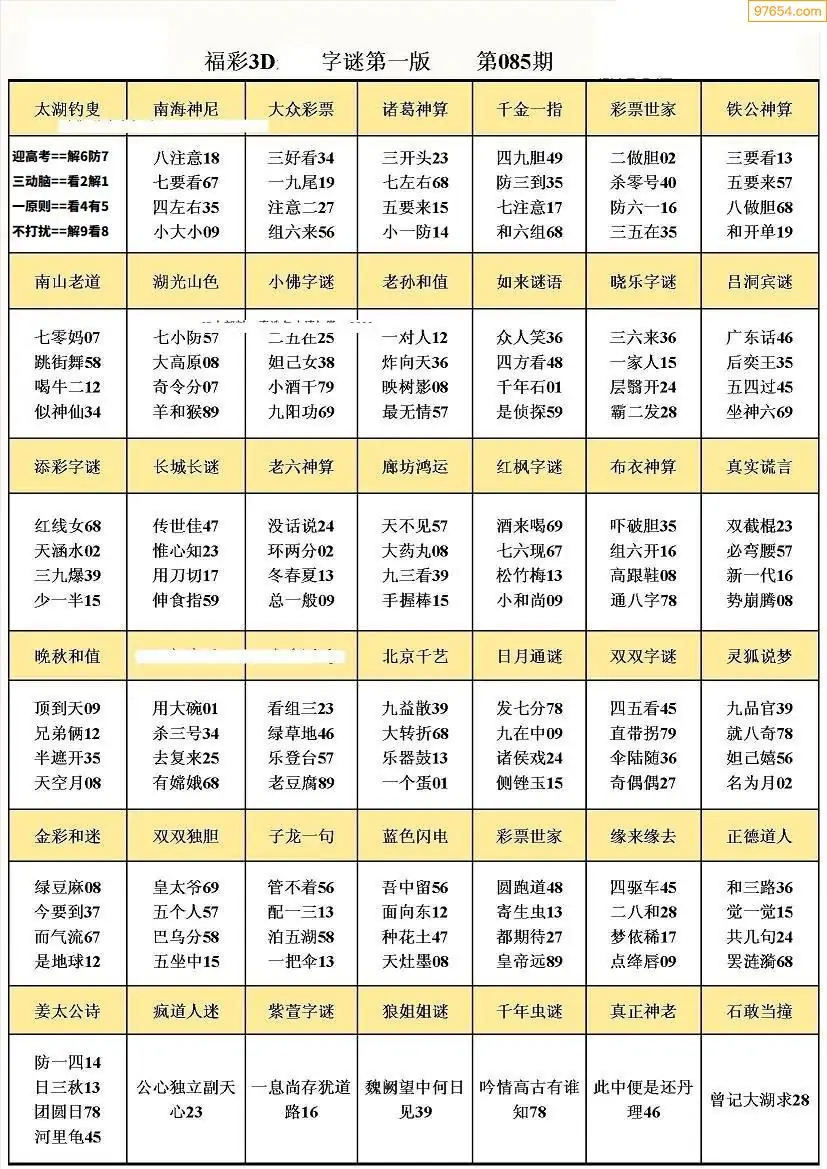 (3)2026085期3D预测总汇全图_福彩3d图谜字谜总汇