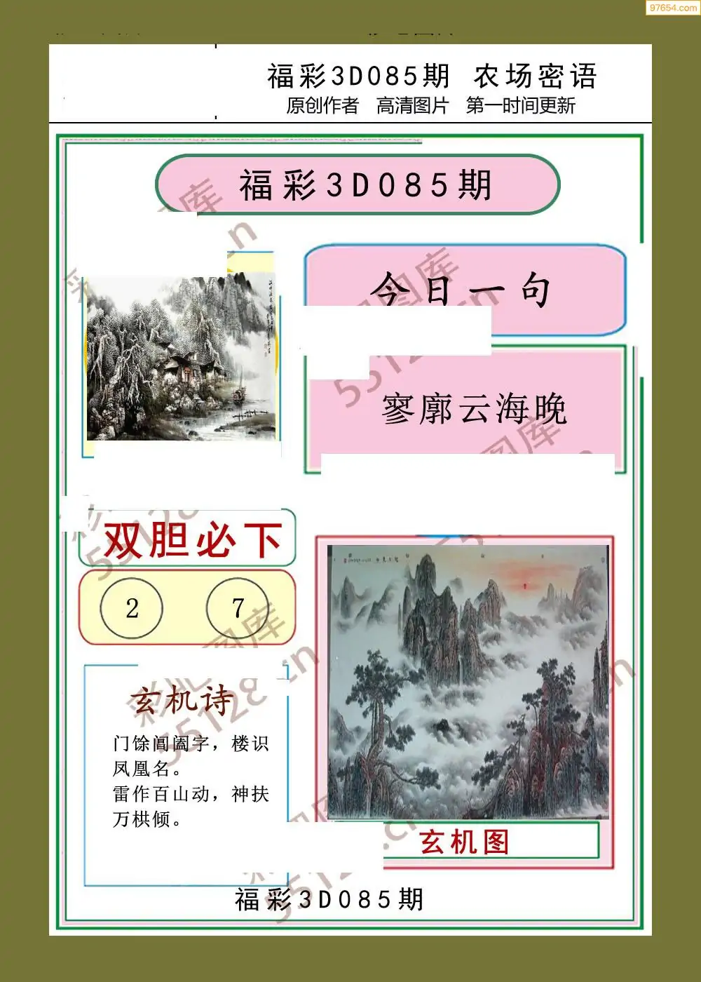 (2)26年085期本期3d图迷汇总_福彩3D图谜总汇图