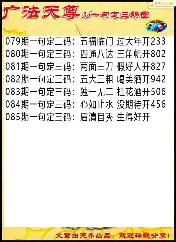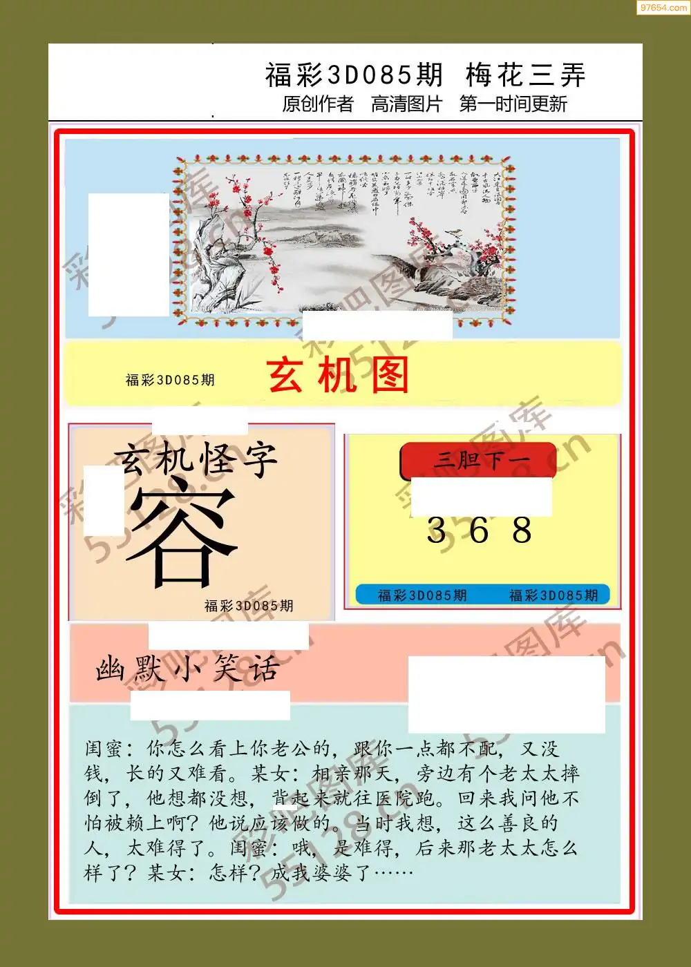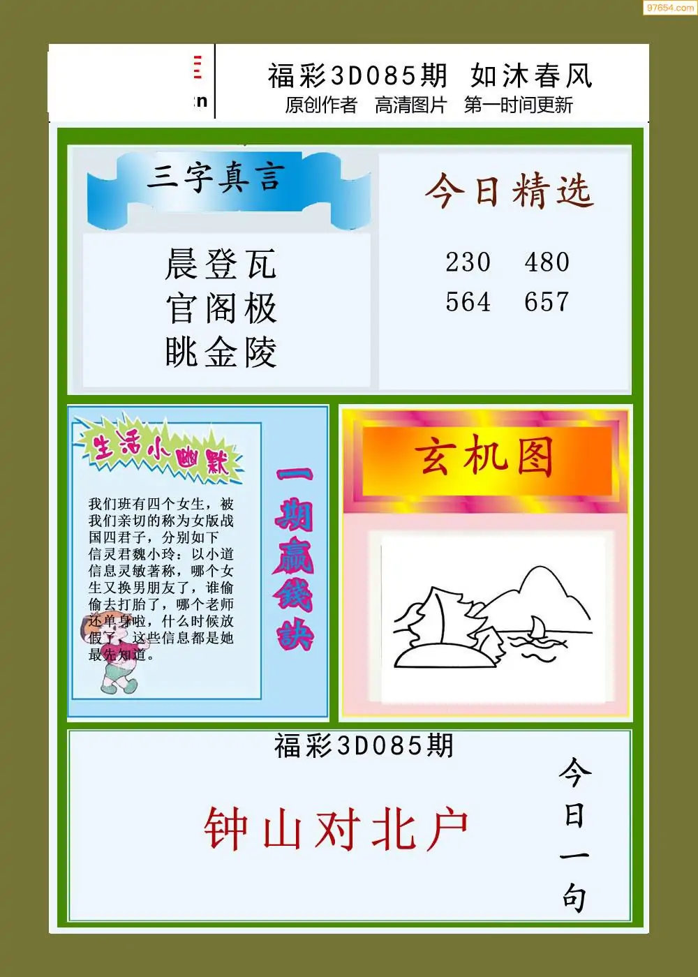 (3)2026085期3D预测总汇全图_福彩3d图谜字谜总汇