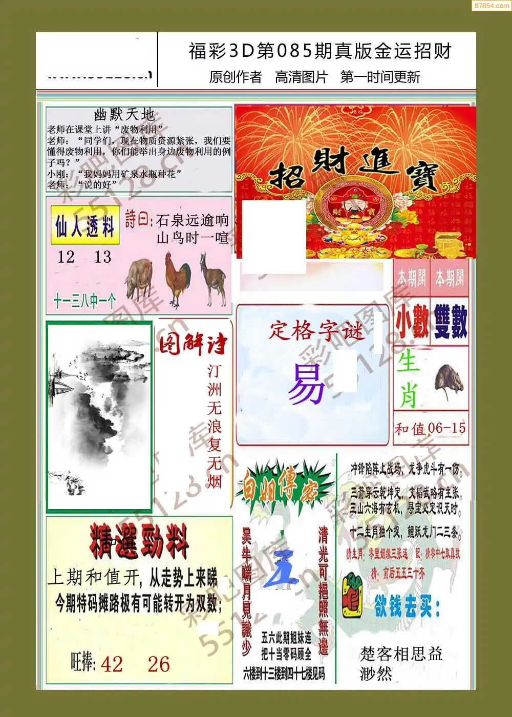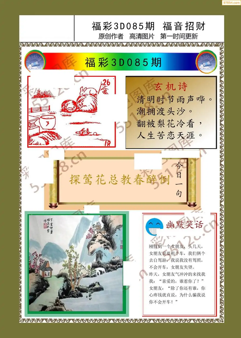 (5)26年085期福彩字谜图谜总汇