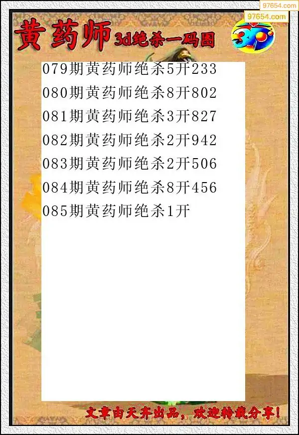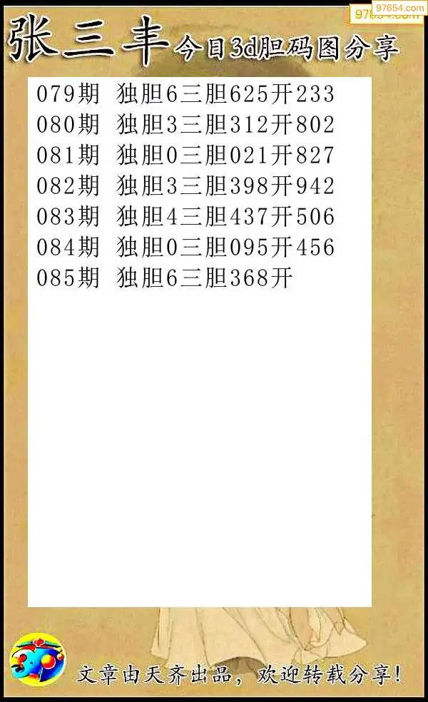 (8)26年085期今日3d各类彩报汇总