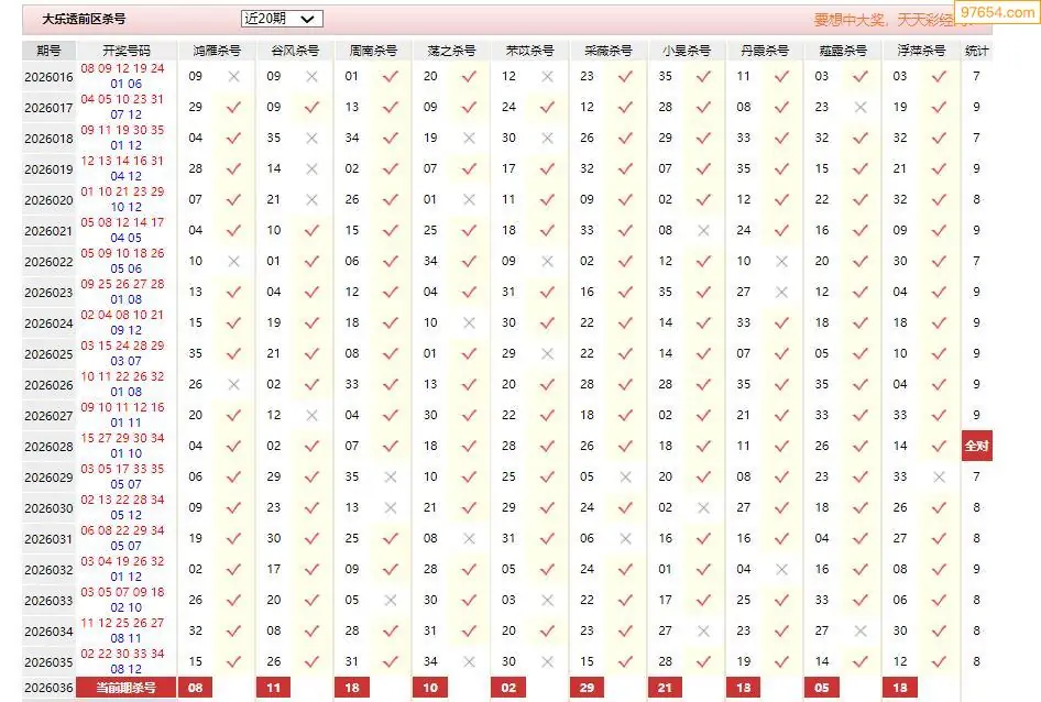 036期大乐透彩经十大专家前区杀号汇总