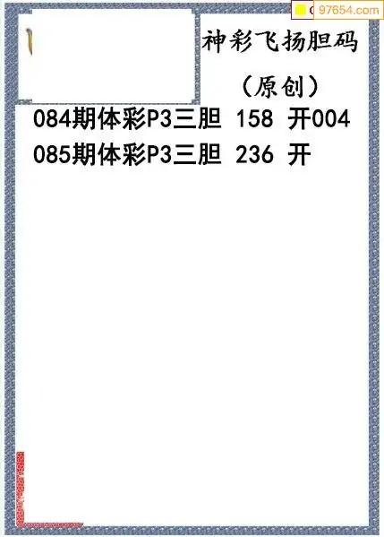 26085期神彩飞扬体彩P3三胆图谜