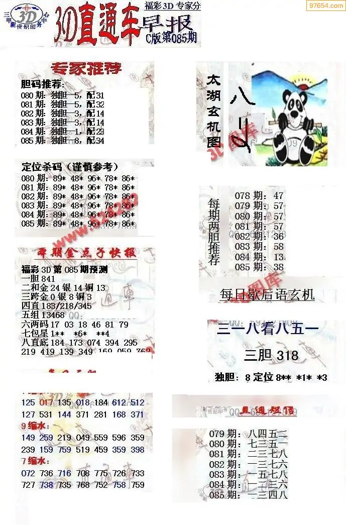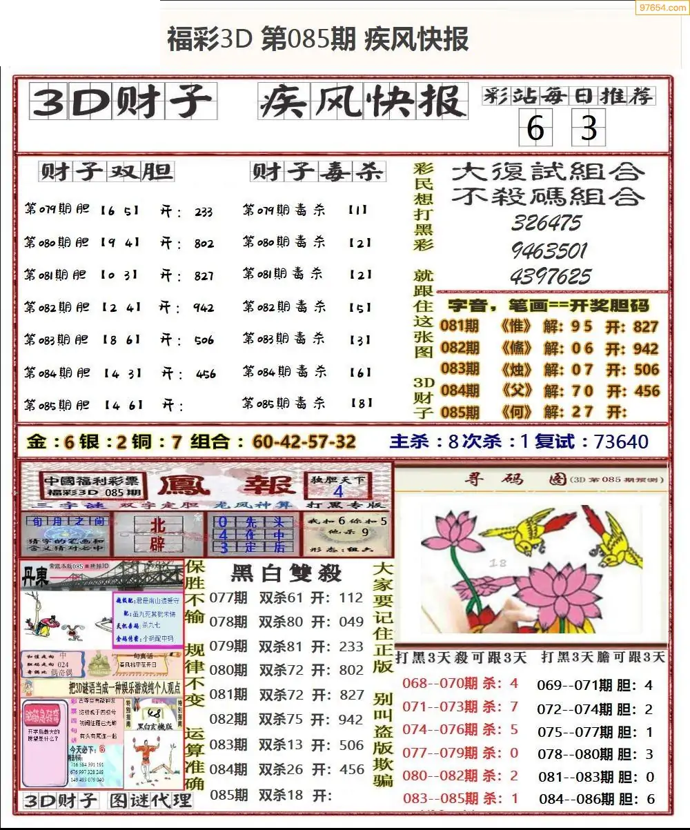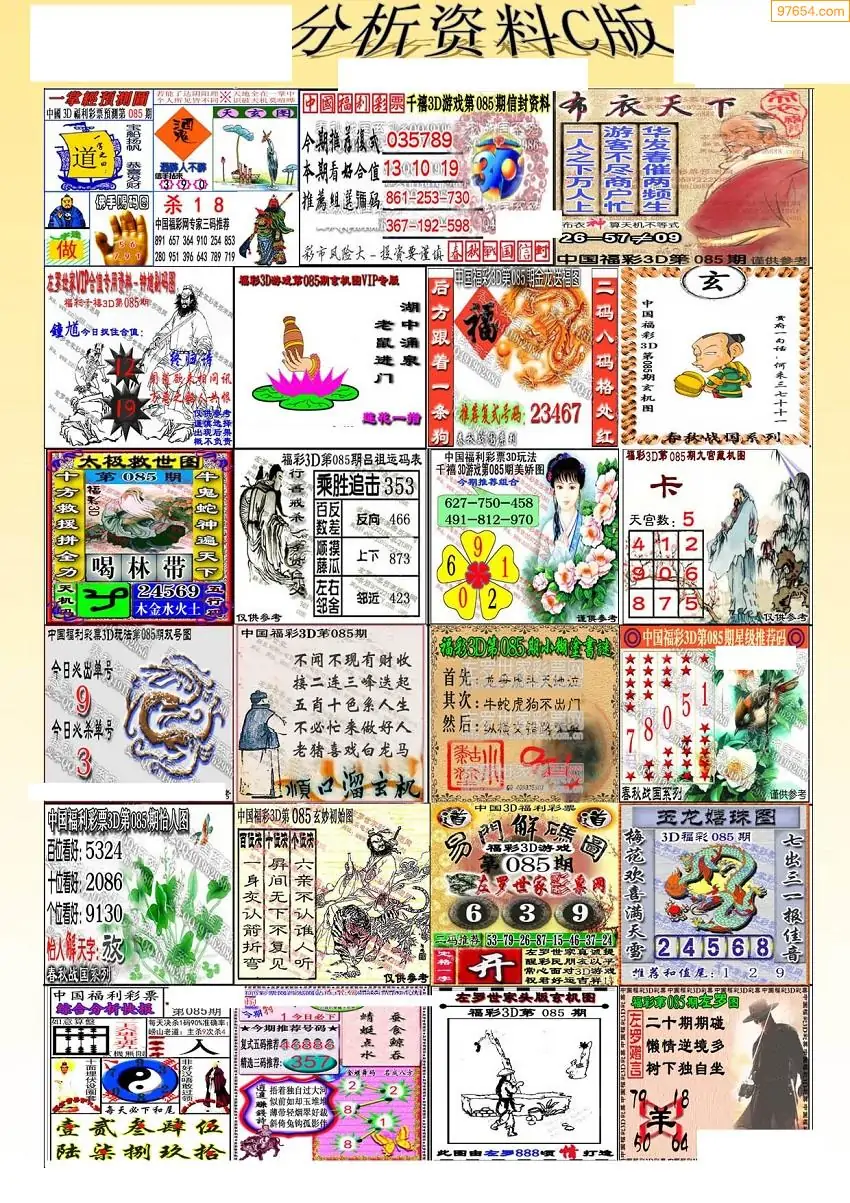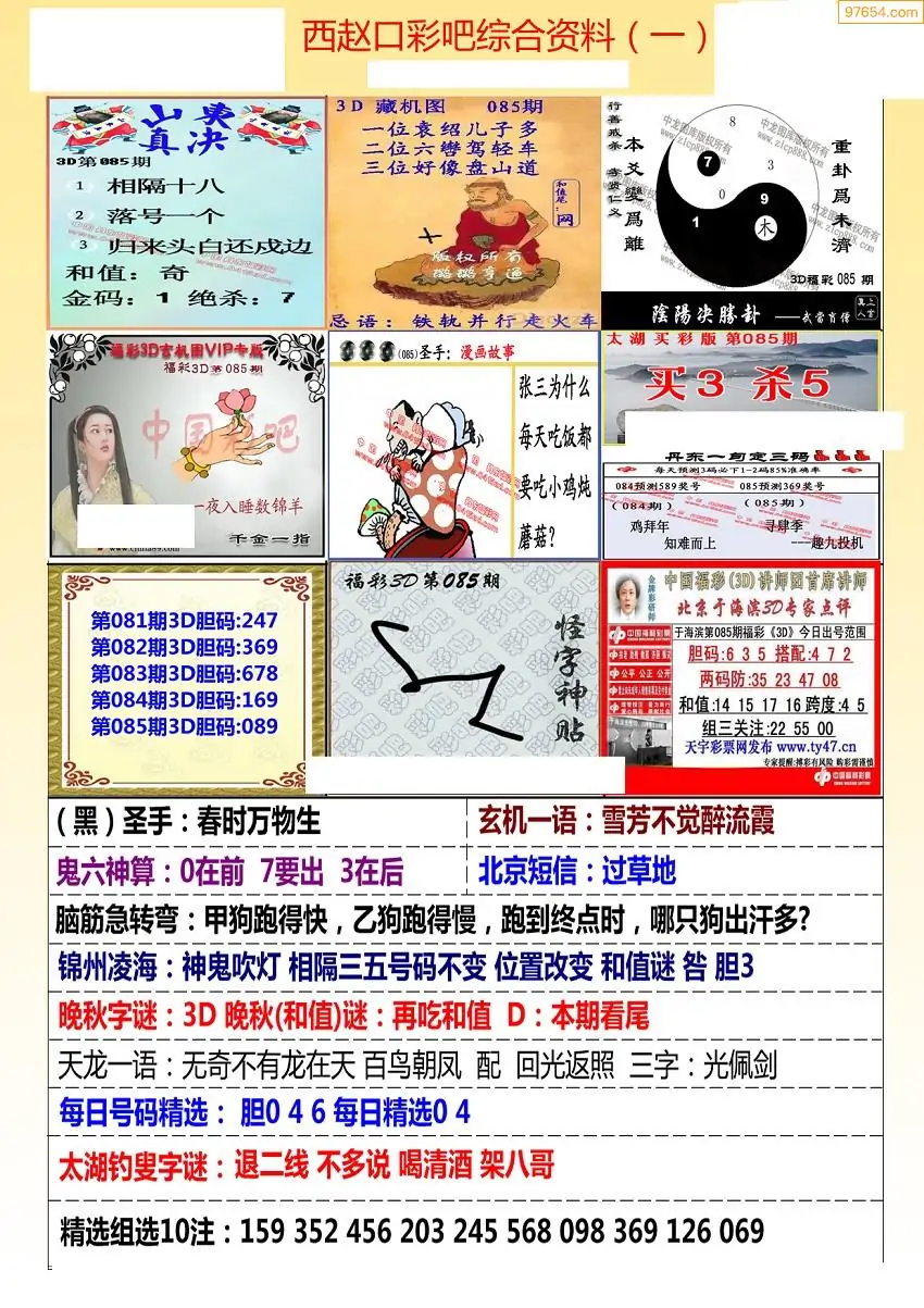 福彩3D085期天牛彩吧套图整合总汇