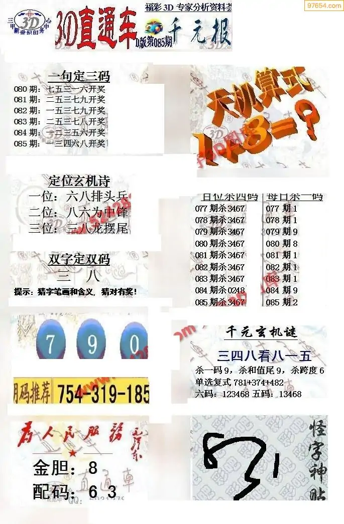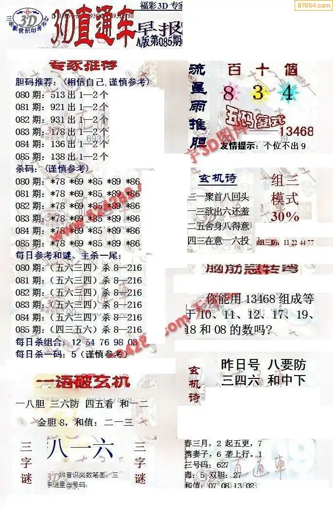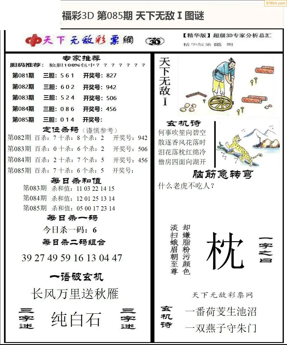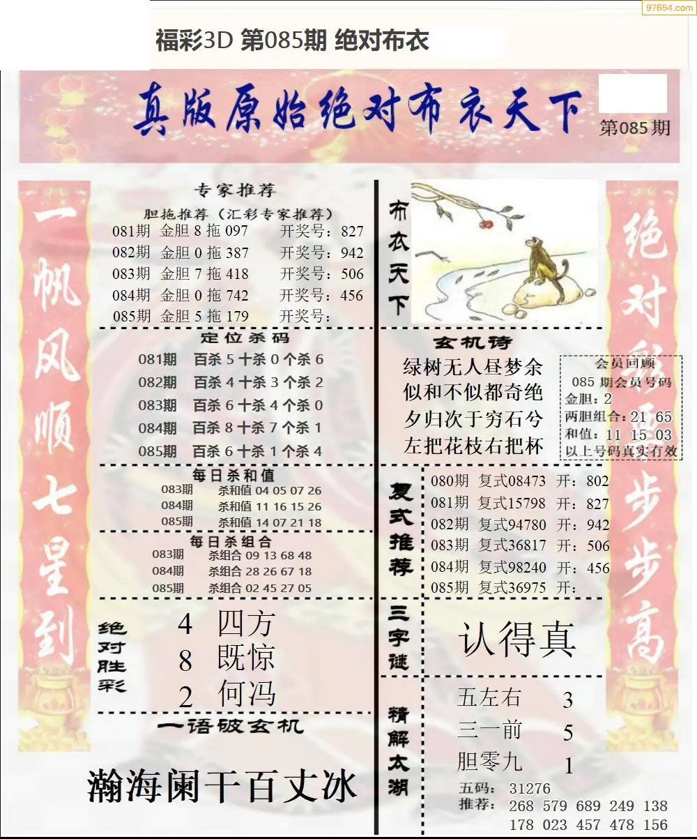 福彩3D085期天牛彩吧套图整合总汇