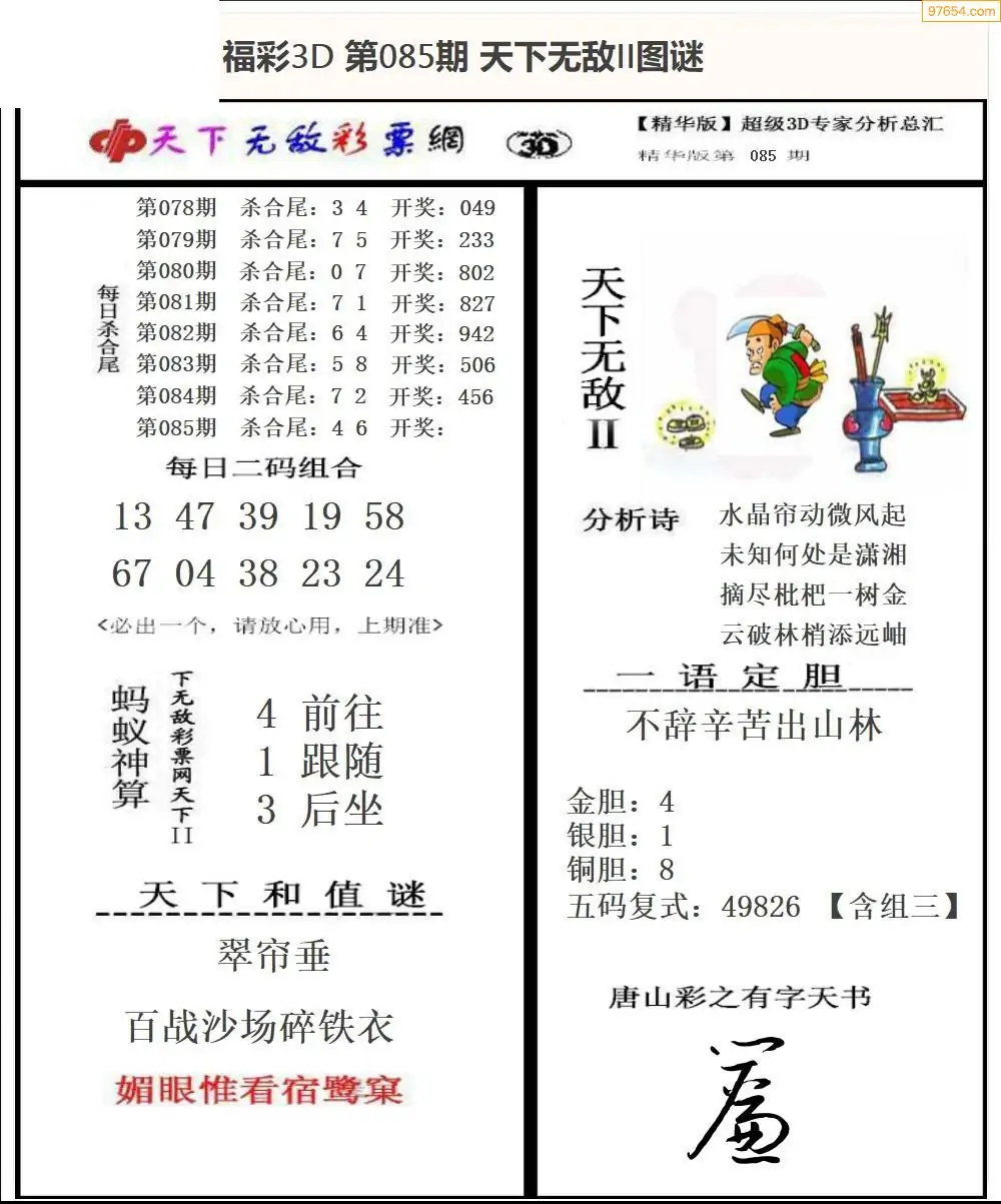 26年085期3d选号彩报图谜画谜