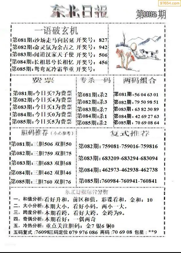 086期3D牛彩预测报+彩吧字谜报