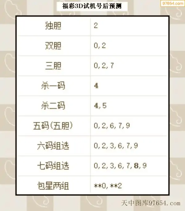 085期西南胆王预测本期3D开奖结果