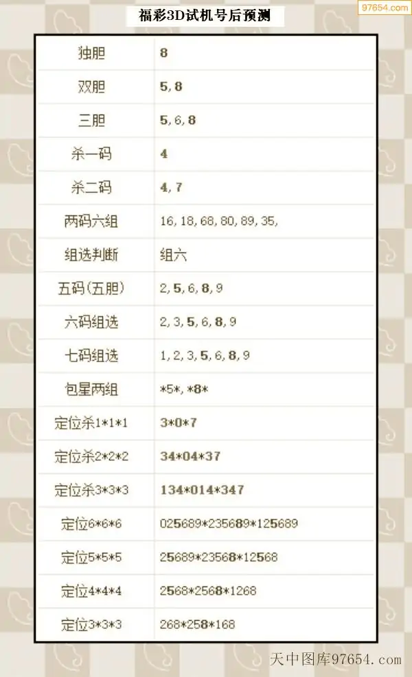 085期西南胆王预测本期3D开奖结果