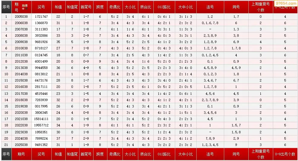 038期七星彩历史同期图表+走势图