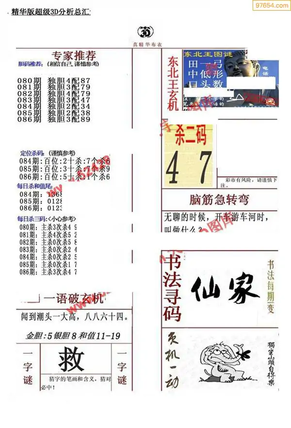 (3)2026086期3D预测总汇全图_福彩3d图谜字谜总汇