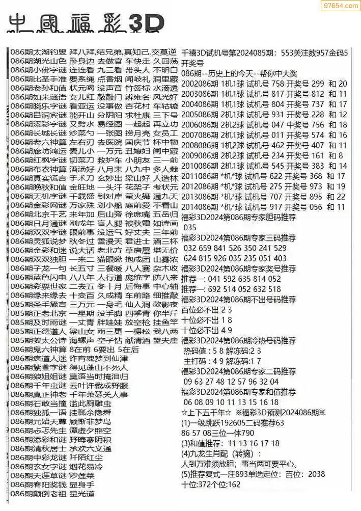 (2)26年086期本期3d图迷汇总_福彩3D图谜总汇图