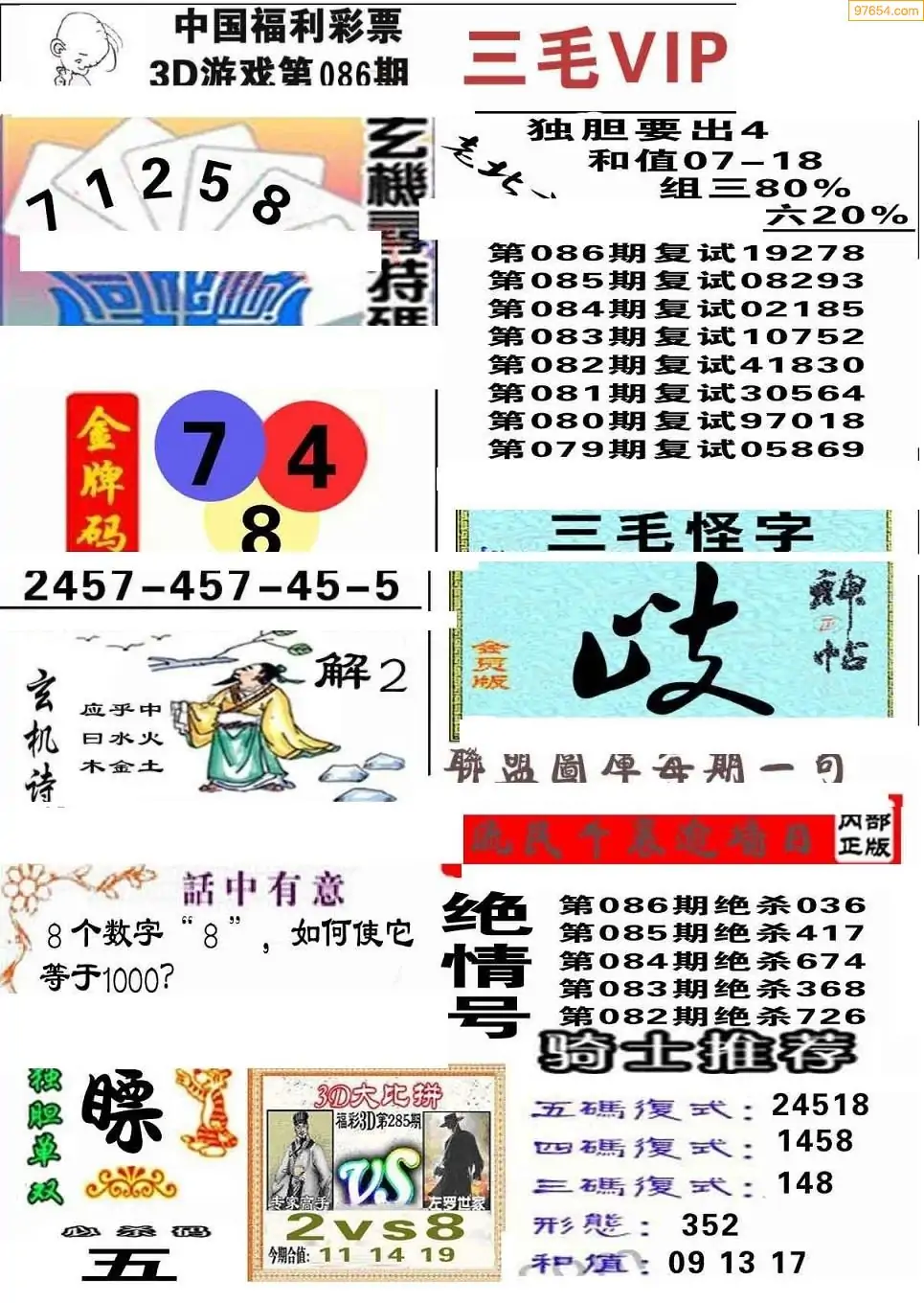 (3)2026086期3D预测总汇全图_福彩3d图谜字谜总汇