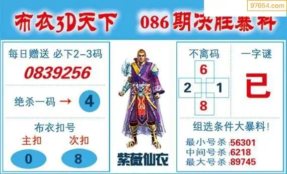 26086期布衣独胆_福彩3d胆码图今天