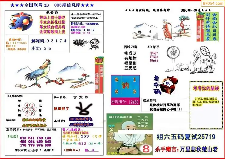 福彩3D086期天牛彩吧套图整合总汇
