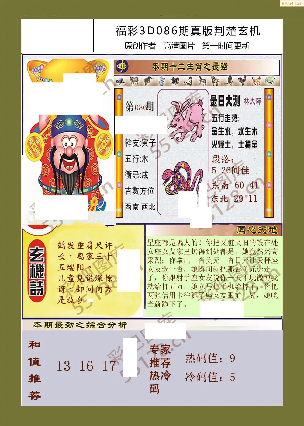 2026年086期电子彩报专家分析