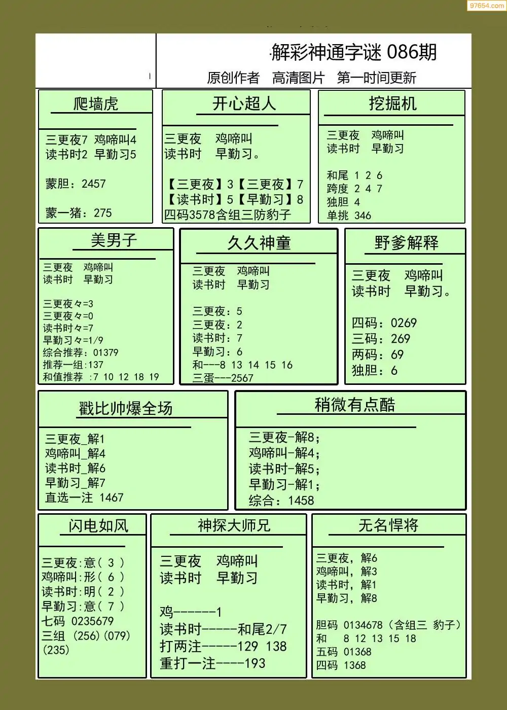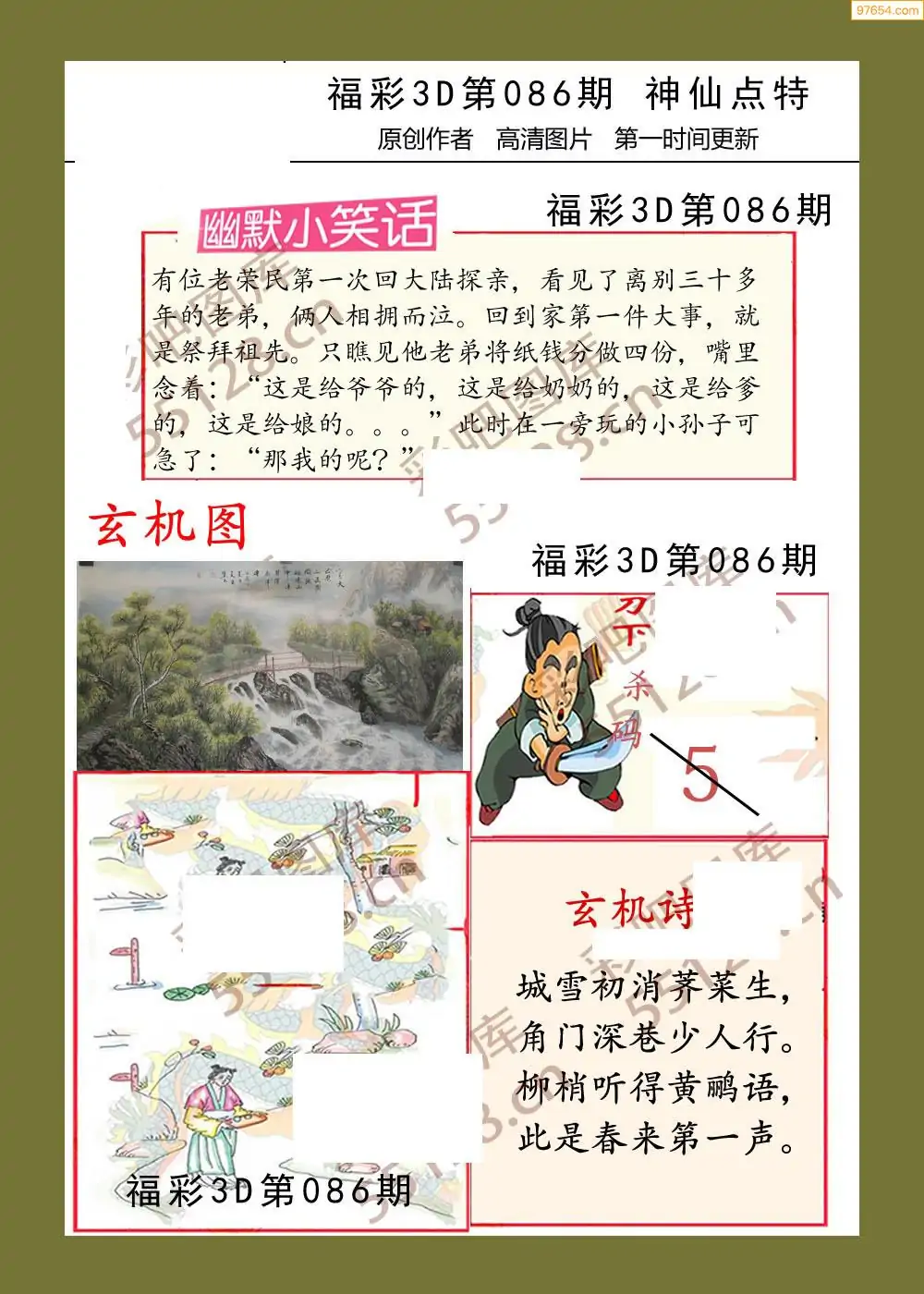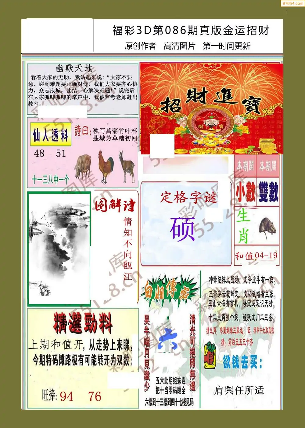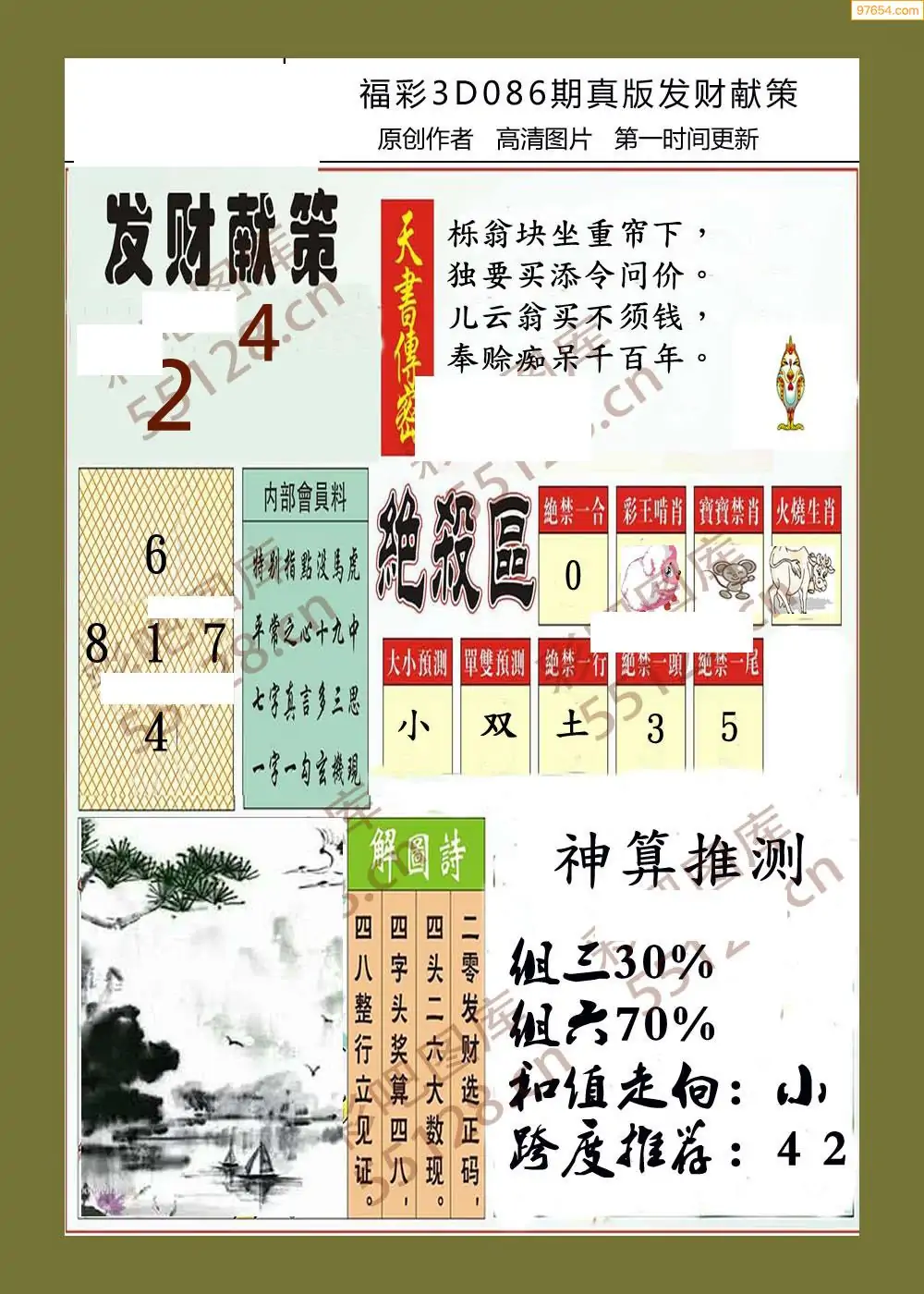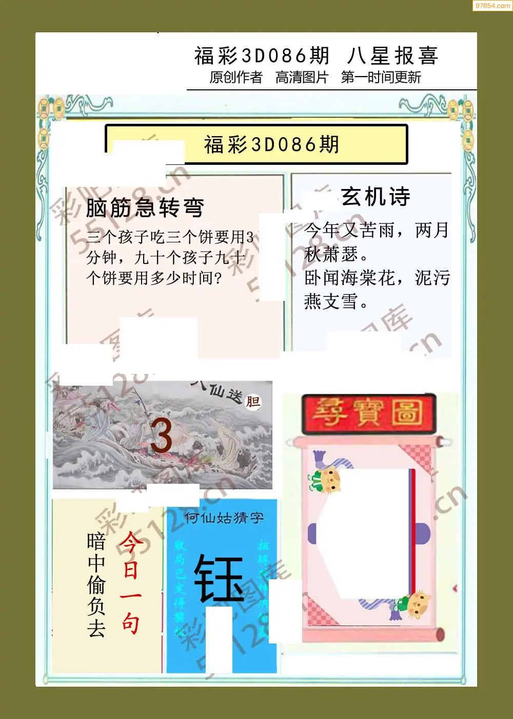 福彩3D086期天牛彩吧套图整合总汇
