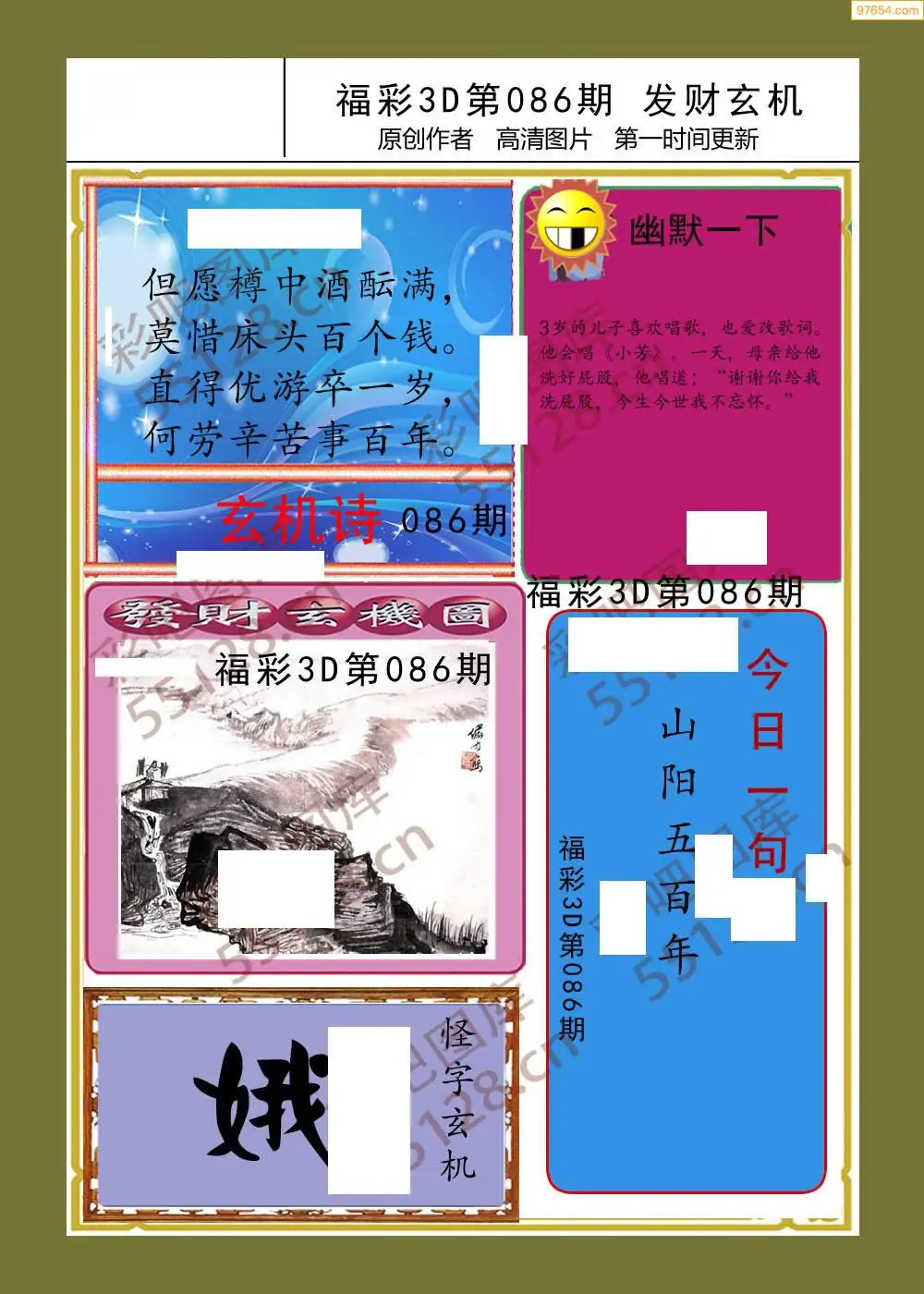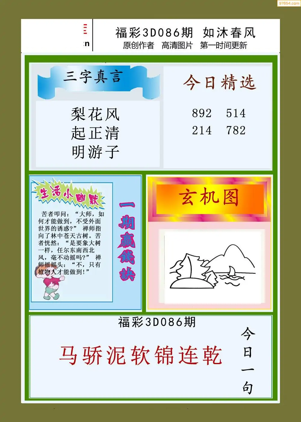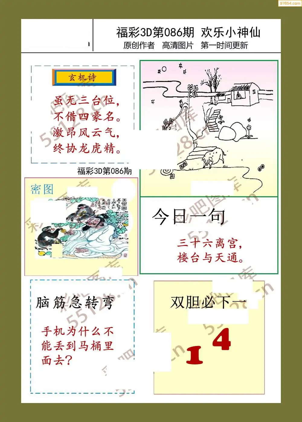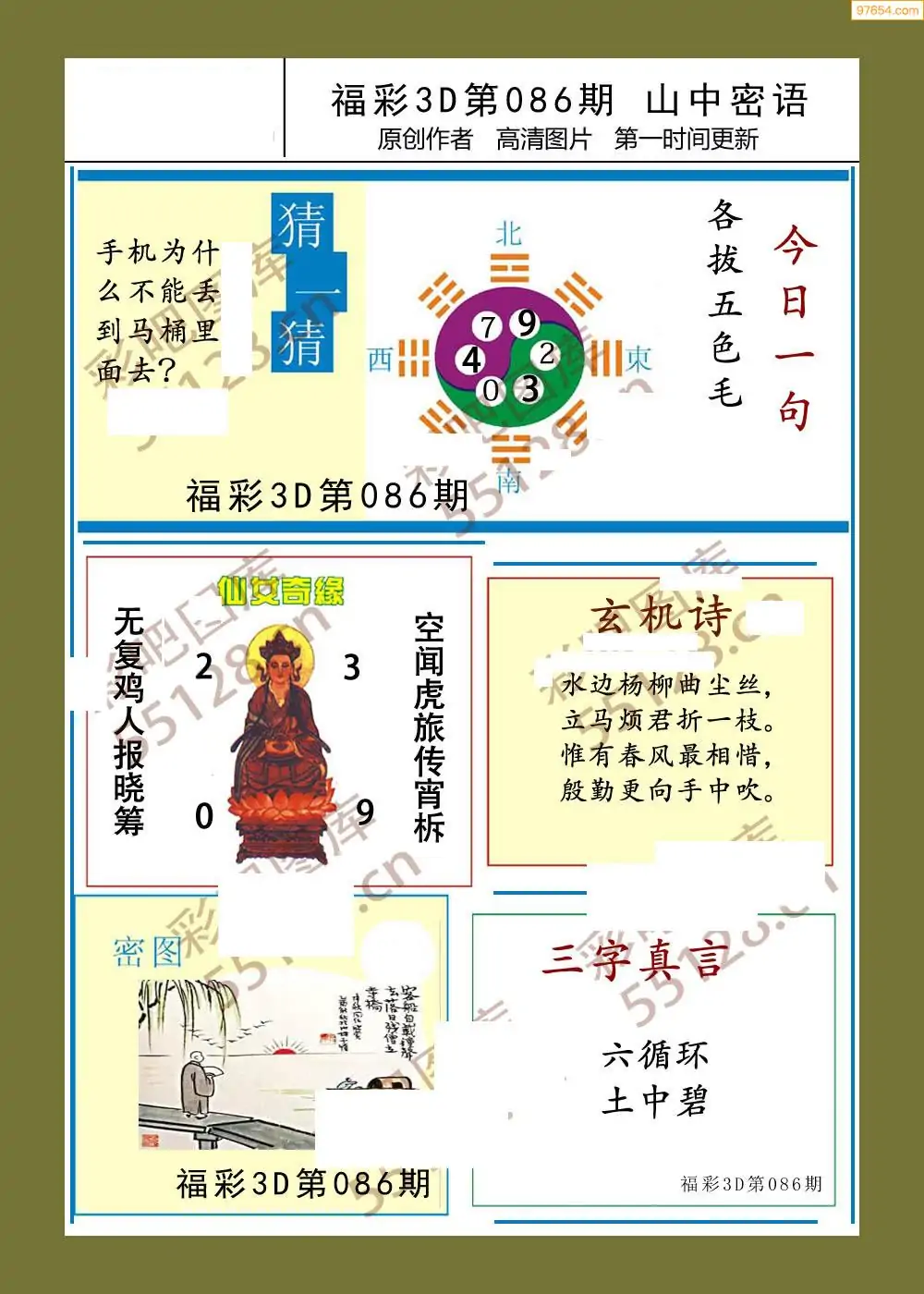 福彩3D26086期蓝仙子一句定三码图谜