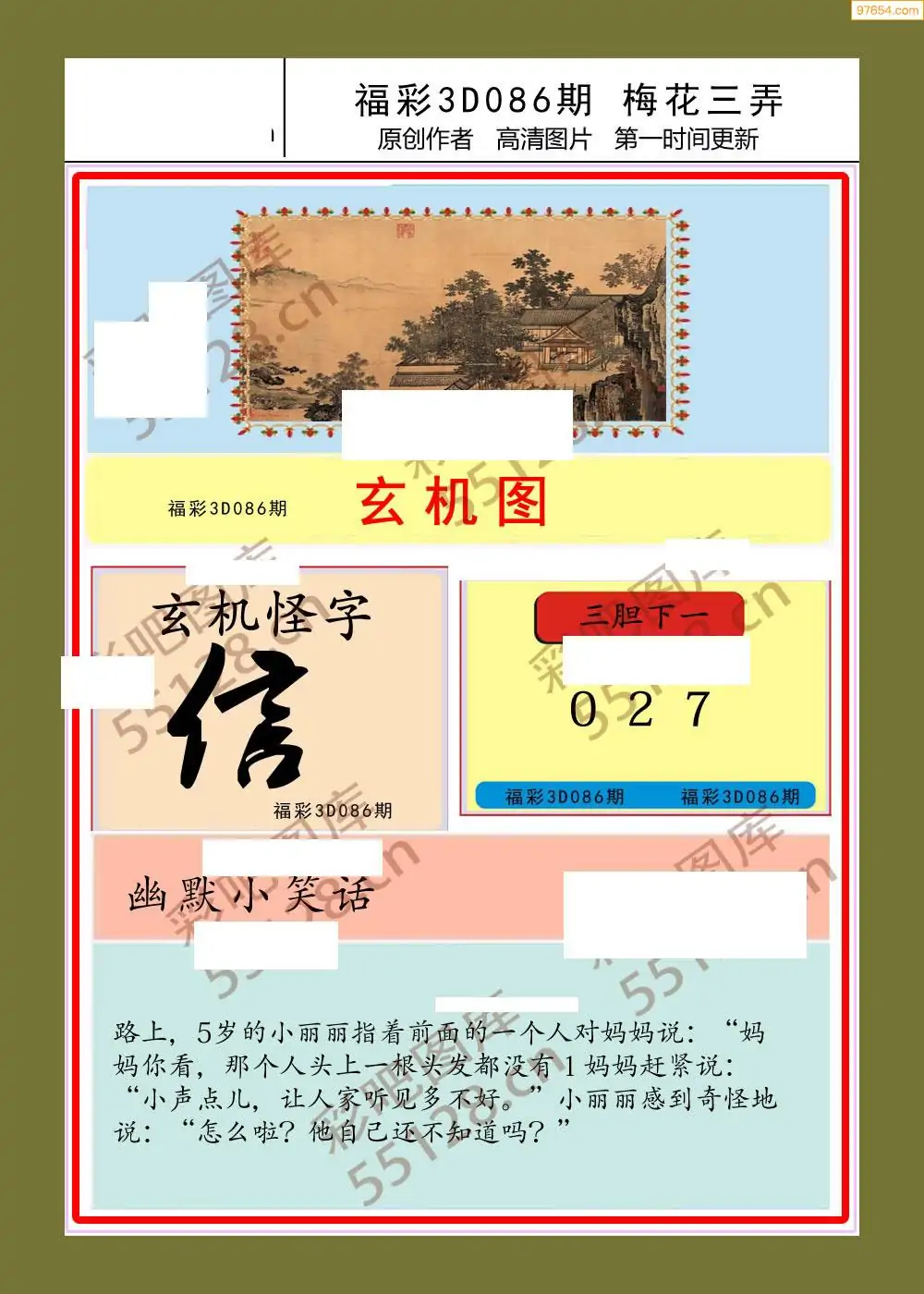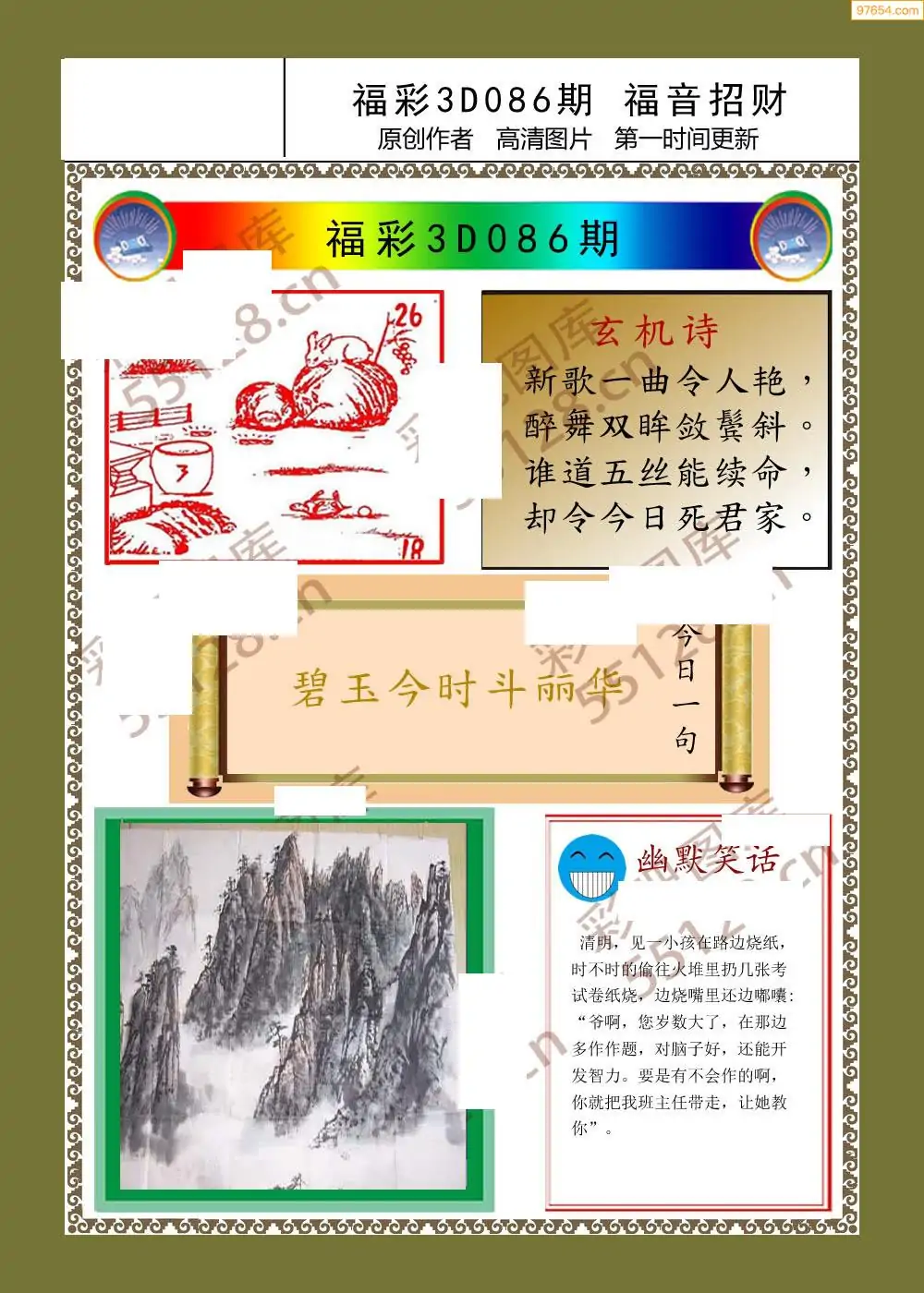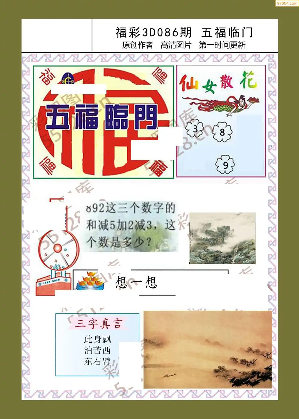 3D26086期本站最新收集精品图汇总(晚版)