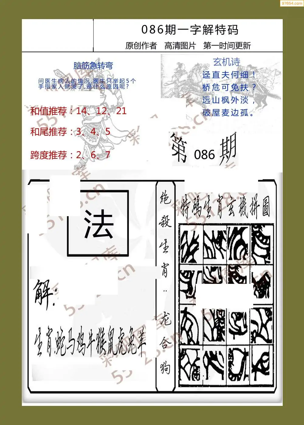 086期福彩天机壁怪字图