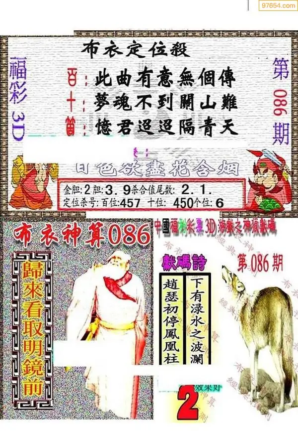 福彩3d086期新禧布衣定位杀号