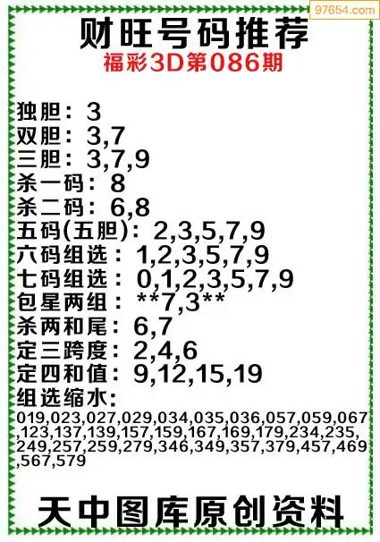 086期97654本站收集胆码出号预测