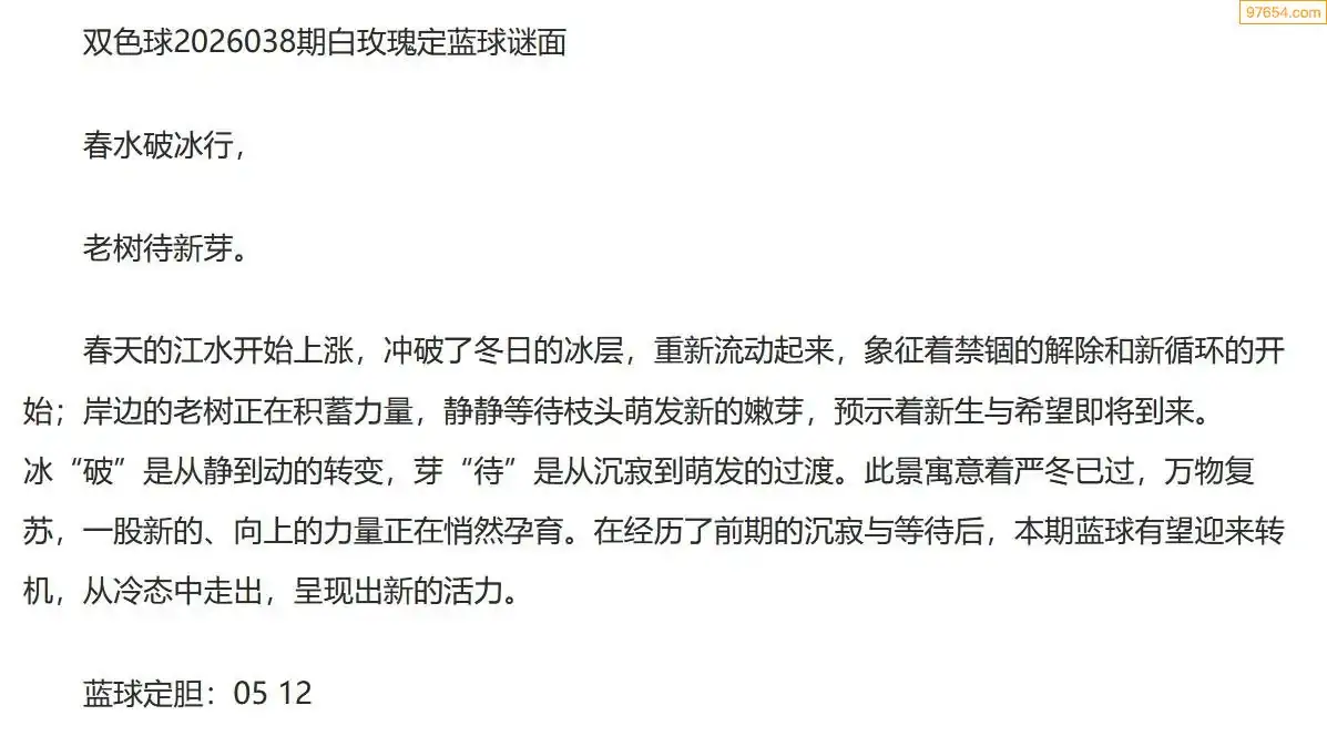 038期牛彩双色球字迷诗迷汇总(天中整理)