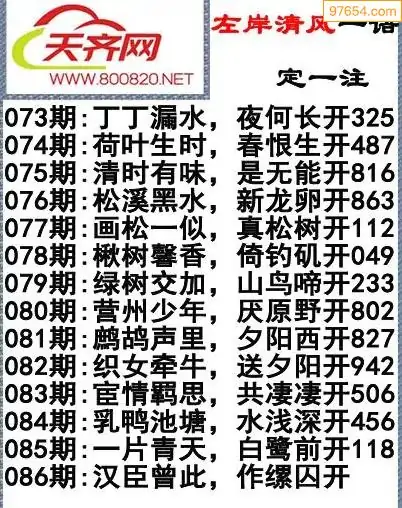 福彩3d左岸清风26年086期一语定一注