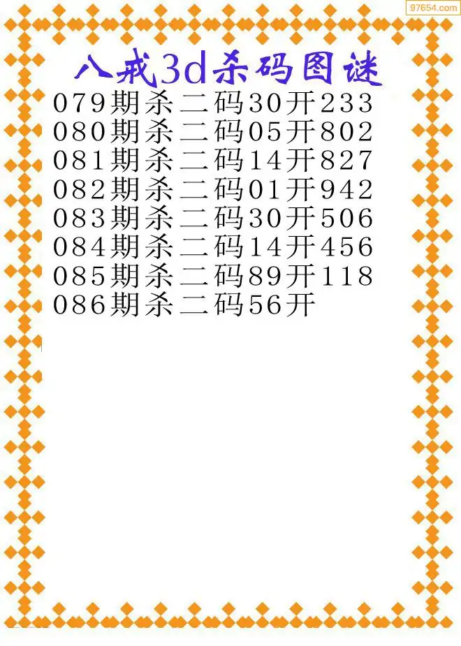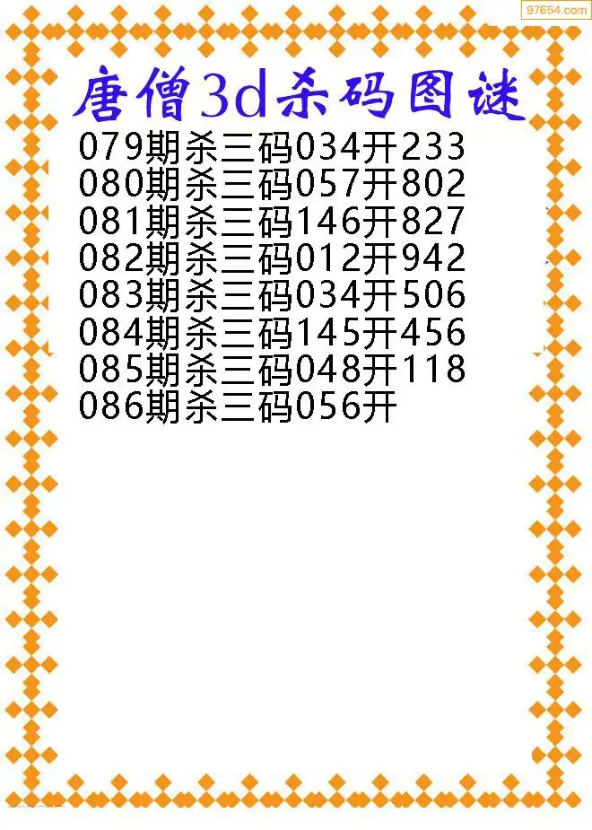 (3)2026085期3D预测总汇全图_福彩3d图谜字谜总汇