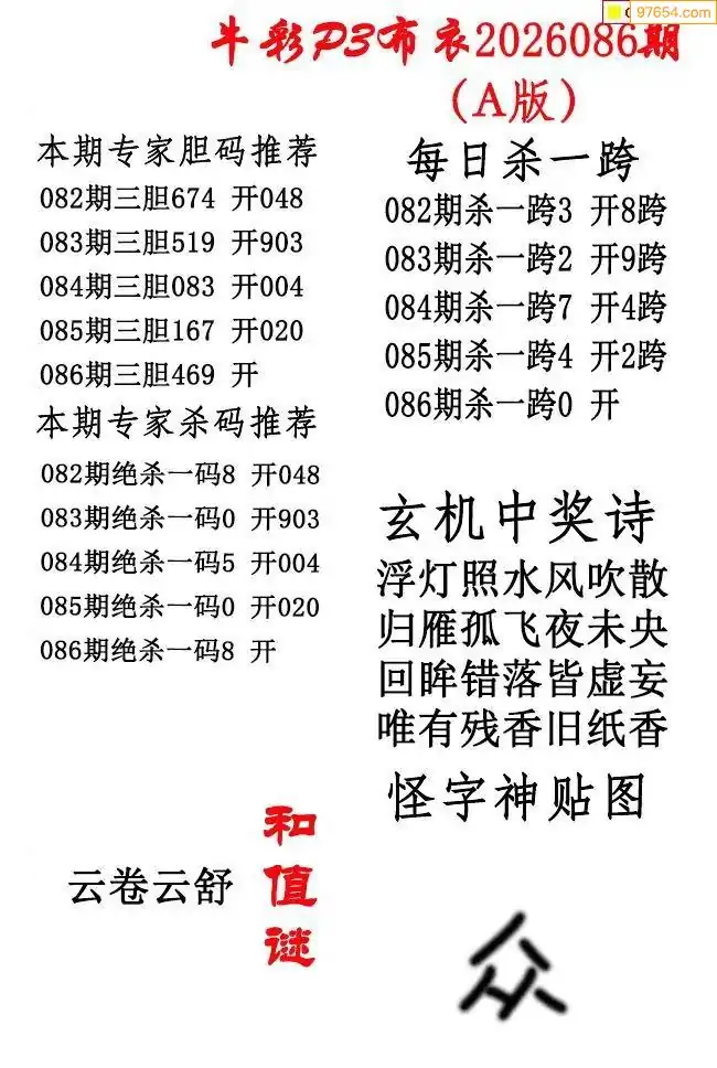 2026086期彩友图迷汇总_图迷汇总排列3图谜汇总考辑牛彩网