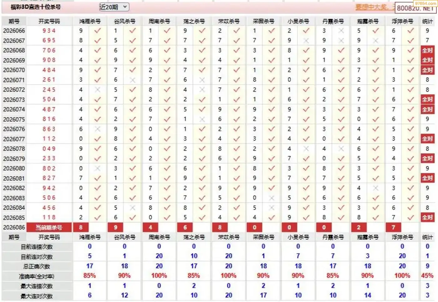 福彩3d086期红岩杀三码 8连中