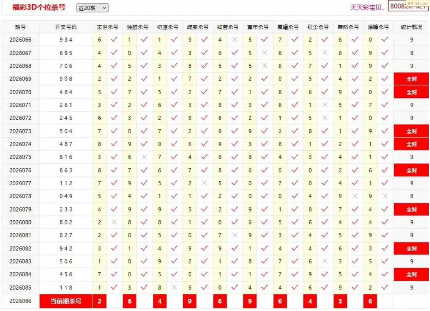 3D086期天中财神原创杀码条件汇总