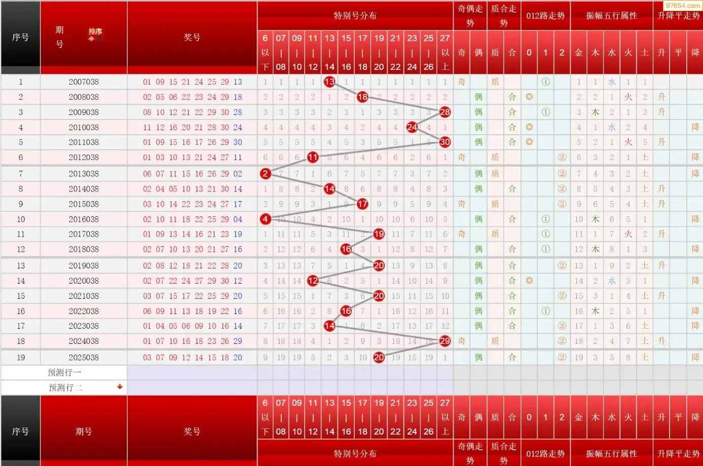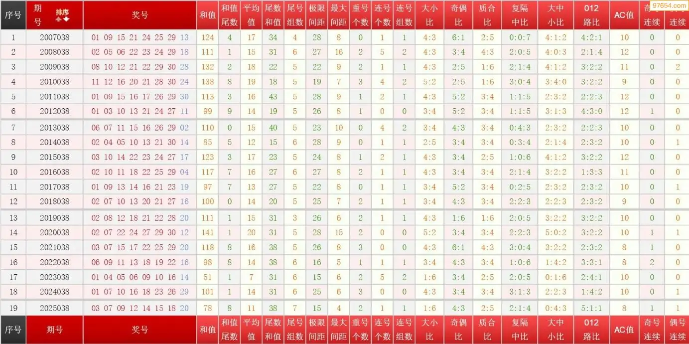 038期七乐彩历史同期图表+走势图