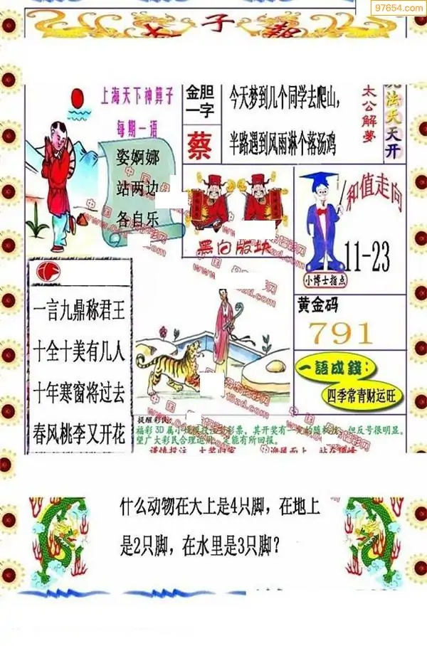087期3D牛彩预测报+彩吧字谜报