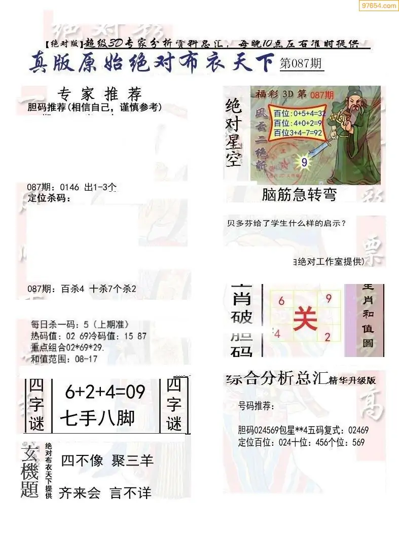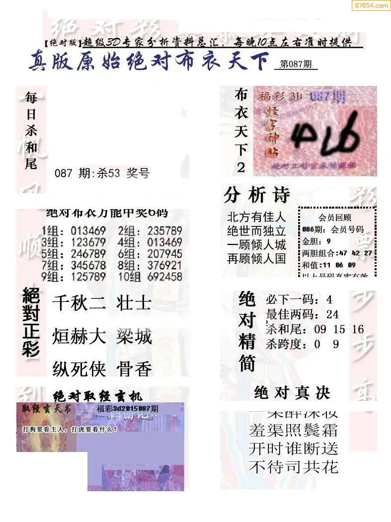 福彩087期3d真精华布衣+布衣早报(转载)